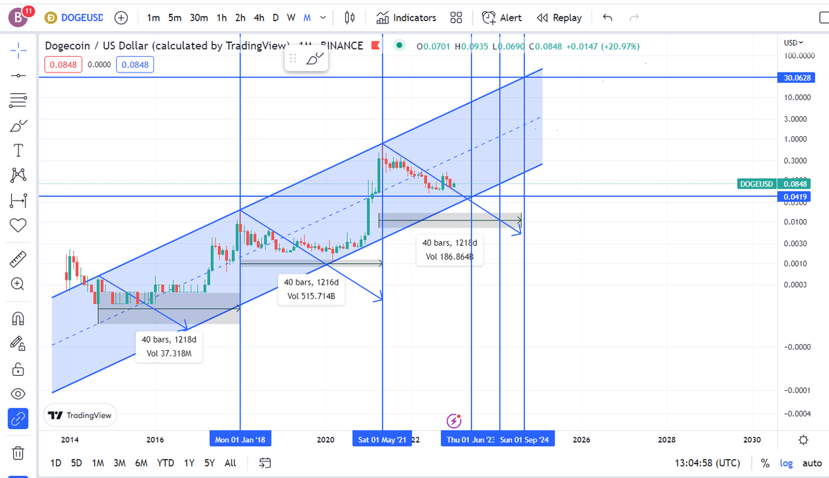 دوستان این یک کانال بلند مدت از2014 تا الانتمام امار موجوده و 19 ماه تا 30 دلار فاصله هست صبر صبر صبردرضمن باید به کف کانال برخورد کنه و بعد پولبک به کف کانال و بعد شکست میدلاین کانالتا 5ماه 0.05 اخرین فرصت خرید6 ماه پولبک7 8 ماه رالی پامپدقت کنین بعد هر پامپ یه اصلاح 3 ساله داریم که الان وسط اصلاح و پایین میدلاینیم موفق باشین