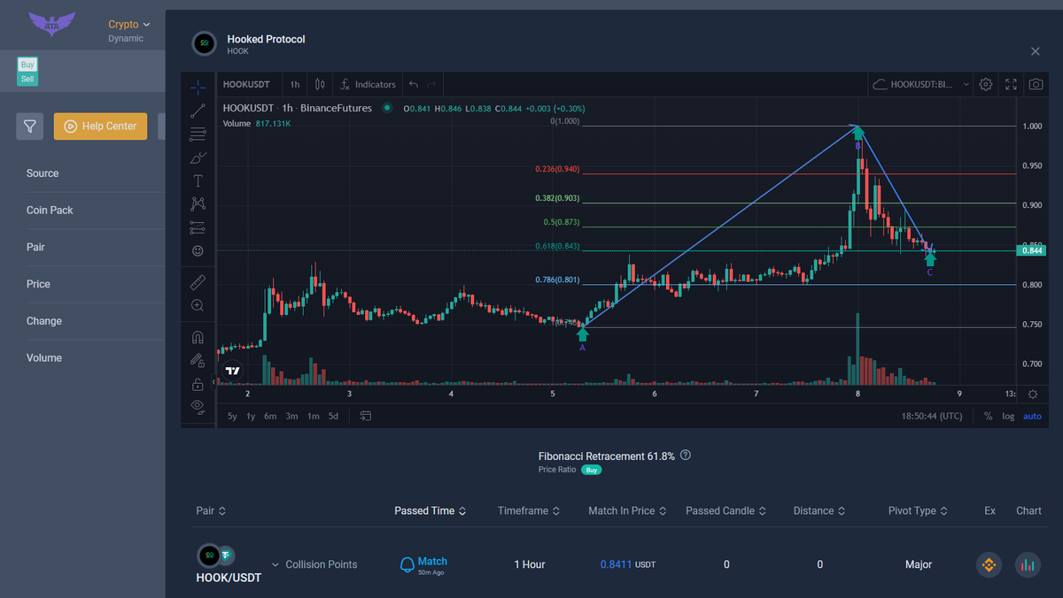 ارز Hook/usdt رو در تایم فریم 1ساعته و صرافی بایننس فیوچرز