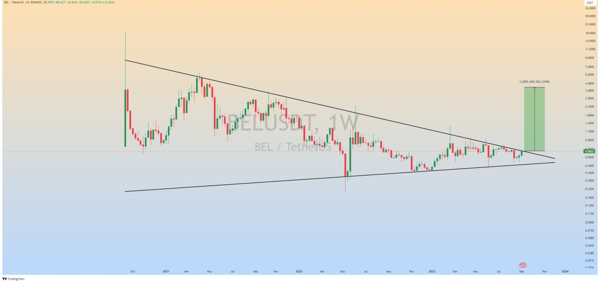 در نمودار هفتگی پس از چندبار برخورد به روند نزولی خود در تلاش شکست خط روند خود است