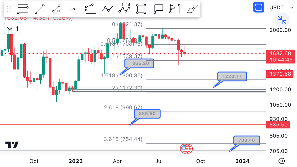فیبوناچی اصلاحی اتریوم نشان از شکست نقاط ۰/۵ و ۰/۶۱۸ در چارت اصلاحی و احتمال بسیار زیاد حرکت به سمت نقطه ۲ در فیبوناچی که هم گره معاملاتی بوده و هم نقطه مهم برگشتی، خط های قرمز در چارت نقطه های لیکوییدیتی هستند که گاها بازار نوسان هایی برای جمع کردن هم پول های روبه بالا و هم رو به پایین انجام میدهد ، به شخصه منتظر اتریوم ۱۲۰۰-۱۱۵۰ خواهم ماند و احتمال برگشت در این نقطه وجود دارد.(صرفا تحلیل شخصی است و از نظر شما بسیار سپاسگزارم)