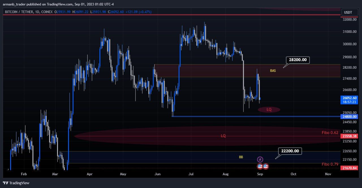 طبق تحلیل قبل قیمت به سطح مقاومتی 28200 واکنش مناسبی داشته و در حال حاضر همچنان از سطح حمایتی 24800 دلار میتونیم شاهد رشد کوتاه مدت باشیم ، ولی برای شروع یک روند صعودی بلند مدت ، قیمت باید سطح نقدینگی مشخص شده رو جمع کنه و تا حمایت های 20k و 22k میتونیم شاهد ریزش در میان مدت باشیم.