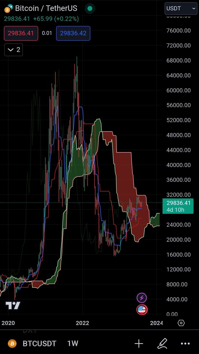 بزودی شاهد حرکت رو به رشد بیت کوین خواهیم بود و کندل ها از ابر کوموی قرمز خارج و بالاتر از ابر سبز رنگی قرار خواهند گرفت که در حال شکل گیری میباشد