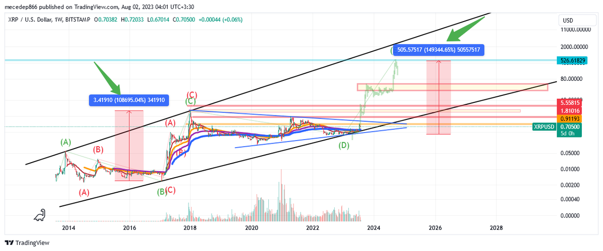 حال بيايد XRP رو هولد کنيم و سال jun 2018 (1397 خرداد ) بفروشيم که در قيمت 2.78 ميشه به عبارتي 505,454.04 دلار يا تتر که همون سال ميشد (دلار تقريبا 15000 ت ) تقريبا 7.5 ميليارد و اگر تا قبل عيد 1402 صبر ميکرديد و دلار يا تتر را تبديل نميکرديد ميشد (دلار 55000 ت) تقريبا 27.5 ميليارد