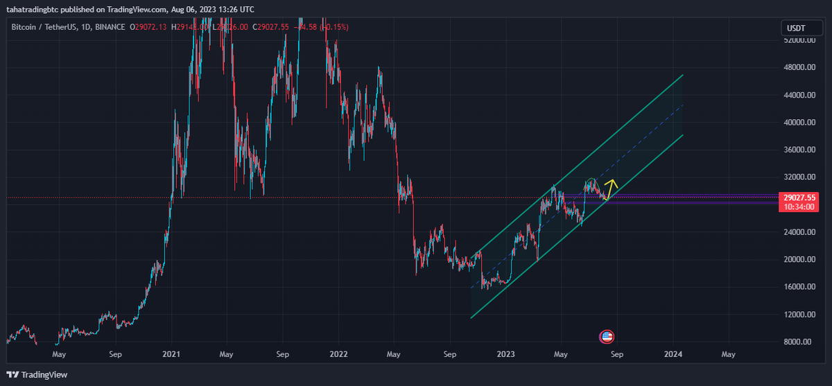 بیت کوین داخل یک کانال صعودی قرار داره.به order block که بخوره میره بالا