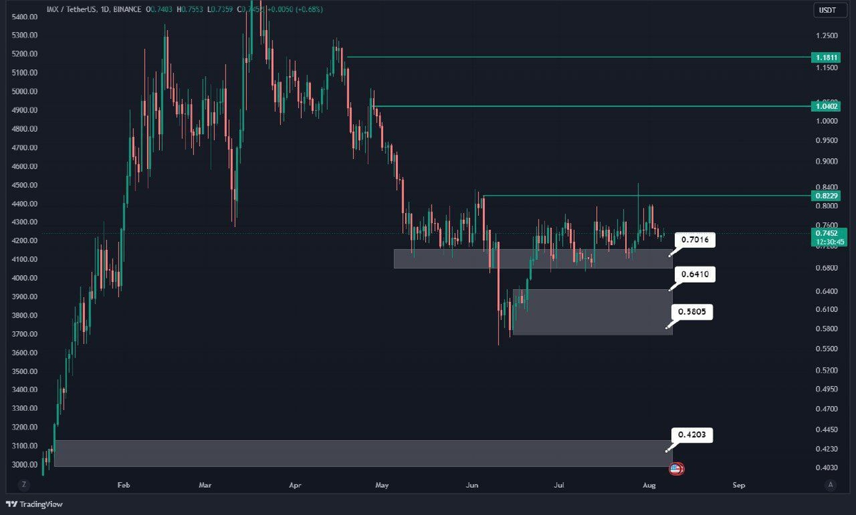 قیمت حال حاظر و محدوده 0.7 دلار در صورت مثبت بودن بازار کریپتو با تقاضا همراه هست.همچنین محدوده 0.64 تا 0.58 دلار هم محدوده های پر تقاضا برای این ارز هستند.