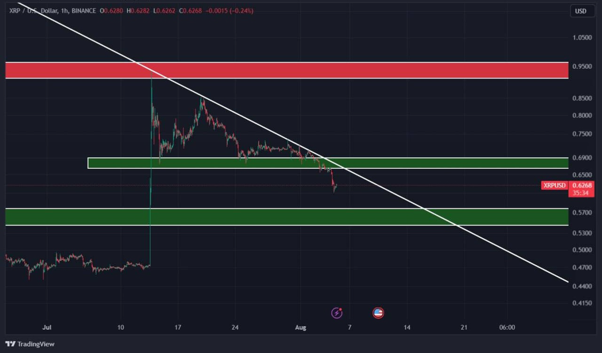 ارز ریپل در تایم فریم یک ساعته پس از شکست محدوده حمایتی خود درحال حاضر روی محدوده 0.62 سنت قرار دارد .