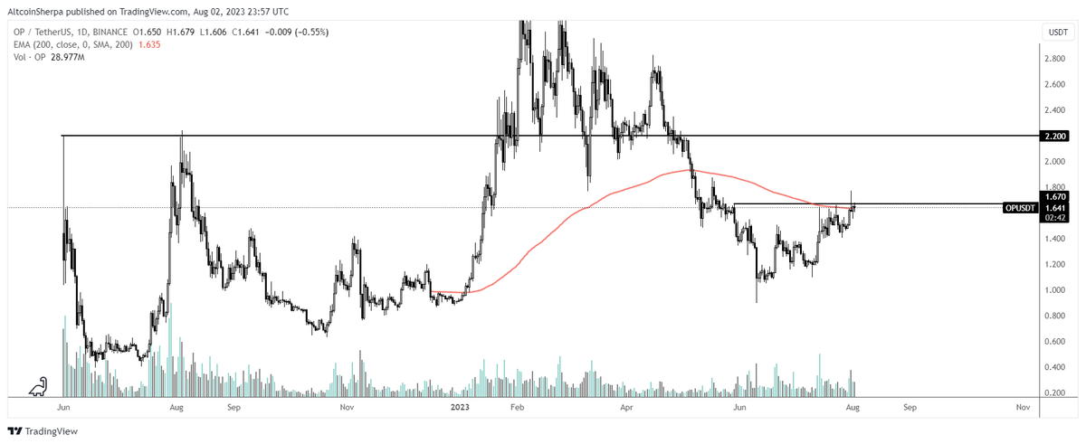 I bought this one and think it looks like 1 of the stronger altcoins out there. I am planning on selling in the low $2s. 200d EMA potentially about to be flipped and significant S/R lvl. (yes, I know this is resistance and its prob better to wait but I have lower bids too)
