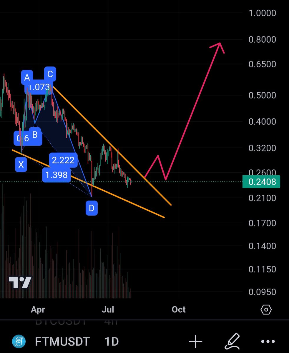 یک الگوی مثلث افزایشی داریم که در اتمام روند کاهشی و پترن هارمونیک افزایشی داخل الگوی مثلثمون هست