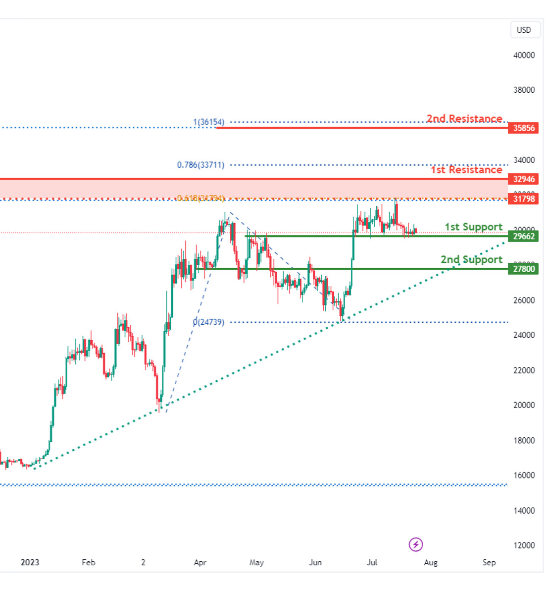 تحلیل بیت کوین دوشنبه ۲ مرداد ۱۴۰۲
