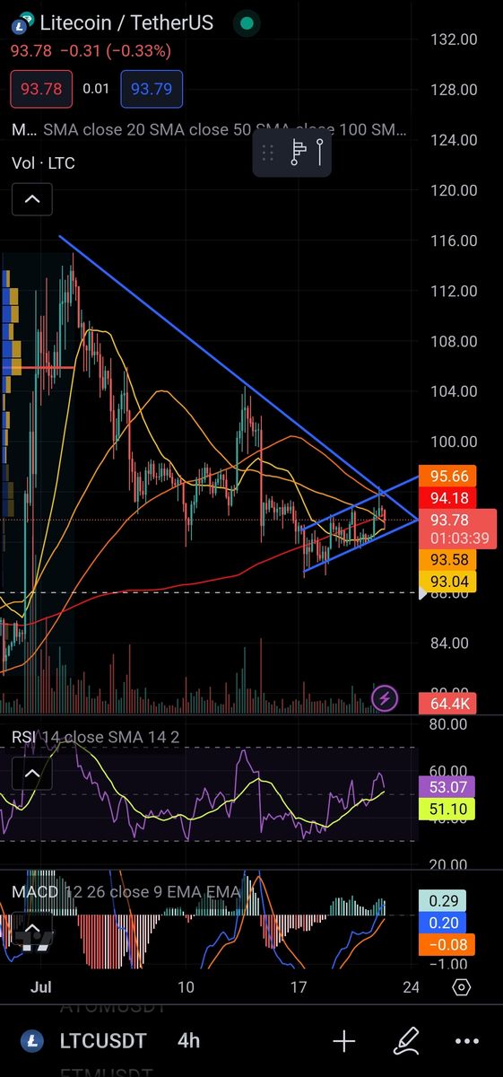تحلیل تکنیکال لایتکوین در تایم فریم 4 ساعته