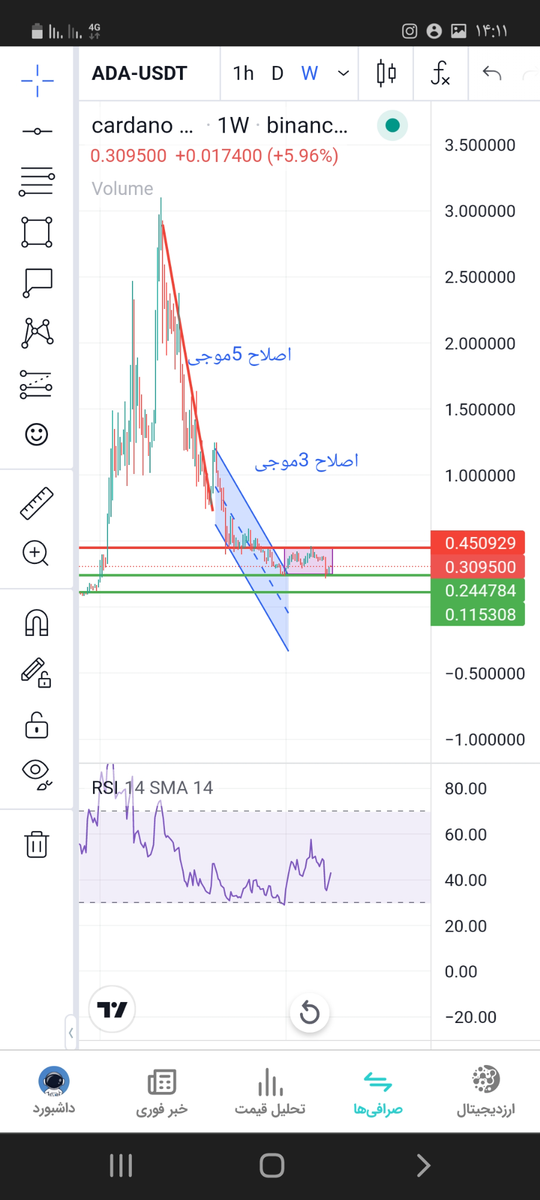دوستان گلم که تحلیل ارز کاردانو رو خواستن.عزیزان چارت کاردانی مثل خود ارز خیلی صادق و رو راسته تایم هفتگی و نگاه بلند مدتی.قیمت بعد از دو کانال ریزشی که مشخص کردم اولی ۵ موجی و سنگین و شارپی بوده بعد کمی بازیابی قیمتی کرده و دباره وارد کانال اصلاحی دوم شده که اهمیت ماجرا اینجاست که ریزش ها در کانال دوم هم شدت و هم طول موج های کمتری داشته که ۳ موج ریزش داشته و قیمت کم کم کف حمایتی خودش رو پیدا کرده در قیمت ۲۴ سنت و از اونجا یه باکس رنج رو میبینیم بین قیمت ۲۴ تا نقطه مقاومتی ۴۵ سنت .خیلی زیبا نمودار گویاست و پویا و زنده و کاردانو در حال ریکاوری شدنه.این باکس اگر از پایین بشکنه که احتمالش کمه و با فاند های منفی سنگین امکانش هست کف کف قیمت رو مشخص کردم براتون ۱۱ تا ۱۳ سنت.از بالا هم بشکنه که بوران بعدی هست باید تحلیل جدید بزارم.اما اگر بلند مدتی هستین خرید یه پله در قیمت ۲۴ تا ۳۰ سنت.پله بعدی اگر قیمت باکس رنج رو شکست در ۱۵ سنت.اگر هم نوسانگیر هستین میتونین ریز موج هارو در کف این باکس بگیرید و در میانه باکس بفروشید.موفق باشید