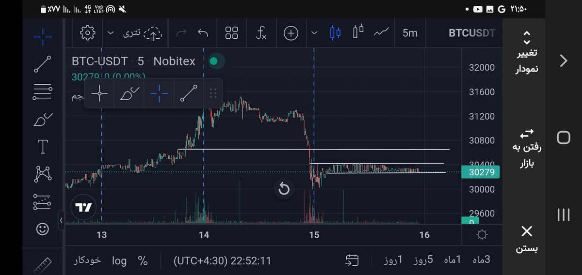 با سلام خدمت همه دوستان عزیز من با تحلیلی که انجام دادم می خوام بهتون بگم که الان در تصویر هم مشاهده کنید می بینید که بیت کوین توی ی کانالی در حال خزشه نقطه حماتش 30260 که در حال حمایت هس ونقطه مقاومت این هس 3420و این رمز ارز اگه بتونه این مقاومت رو بشکنه می تونیم براش31000 ببینیم