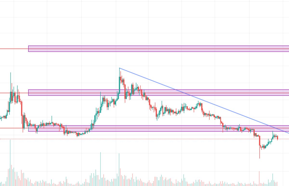 هر چند اینجا در سایت ارزدیجیتال چارت خیلی خوب نمایش نداده اما در واقع بعد از ترند نزولی و تشکیل مثلث صعودی در کف قیمت، شیبا مجدد مثلث را به سمت بالا شکست، به ناحیه 0.0000076-0.0000078 پولبک زد الگوی MTR را تکمیل کرد و در حال ادامه روند است. طبق اینکه در تایم فریم روزانه این شکست رخ داده و ترند نزولی شکسته و پولبک کامل شده امکان یک اسپایک جدی قیمت داریم که با توجه به همایش کانادا و لانچ شدن شیباریوم این سناریو محتمل تر به نظر میرسه. نکته اینجاست که اگر کاتالیزورها اضافه شوند(دادگاه XRP و البته ETF BTC که بیش از چند شرکت سرمایهگذای بزرگ در ایالات متحده آمریکا در این چند سال درگیرشن به نتیجه برسه و مثبت باشه) این رمزارز امکان حرکت شیباگونه خود رو آغاز میکنه و میتونه وارد بعدهای پامپ فضایی بشه. اما در حال حاضر صرفا تا اسپایک به محدوده 0.000014 باید منتظر نتیجه و واکنش مارکت بود.