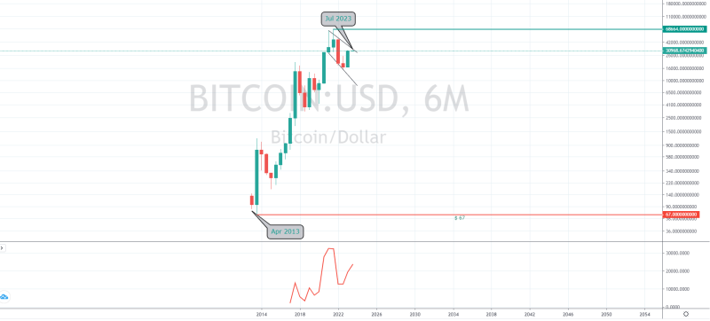 سه روز قبل کندل 3 ماهه و 6 ماهه ی بیت کوین بسته شدند و این کندل های صعودی در منطقه ی مقاومتی سال 2017 و 2018 تشکیل شده اند, از لحاظ مومنتوم قیمت آماده ی صعود برای اهداف بلند مدت میباشد و مهم ترین مقاومت آن بدون شک عدد روانی 68664 دلار, که سقف قبلی نیز میباشد هست. اما در این روزها صنعت کریپتو شاهد اتفاقاتی بوده است که تا به حال به این اندازه سخت گیرانه نبود است که مهمترین آن بیانیه های SEC میباشد این برهه یک برهه متفاوت هست و برای همین رفتار بیت کوین به عنوان ارز پیشرو میتواند متمایز از سال های گذشته باشد.