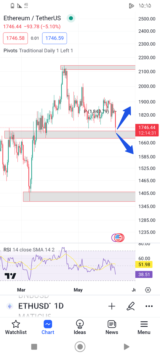 ارز اتریم در تایم فریم روزانه به ناحیه حمایتی مهمی که بار ها به آن واکنش نشان داده رسیده بنظر شما ازاین ناحیه حمایت شده صعود می کند یا نه؟؟؟