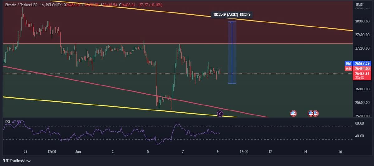 با سلام ، همانطور که بارها در تحلیلهای قبل خدمتتون گفتم کلیت اصلاح ما تا به ۲۰ هزار دلار است اما با نوساناتی ، در این ساعت بیت کوین در قیمت ۲۶۴۳۳ دلاری است ومن انتظار رشدی موقت تا به نزدیکی نا حیه ۲۸ هزار دلاری و در ادامه اصلاح و حرکت به سمت ۲۰ خزار دلار را دارم ، پس در نتیجه این رشد موقت هست و فرصت سیگنال گیری برای اسپات
