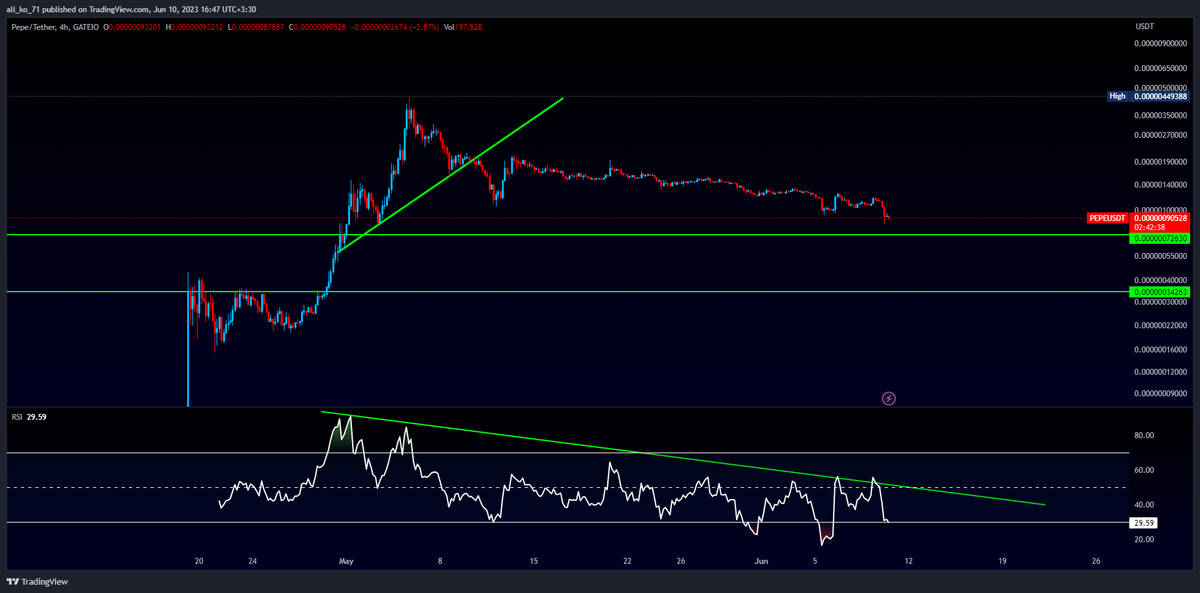 با سلام مجدد , امیدوارم که حال دلتون عالی باشه,اینبار اومدم با آپدیت تحلیل په په, عزیزان.خب در تحلیل قبل حدود یکماه پیش گفتیم که په په تصمیم داره تا به اهدافی که با خط سبز رسم شده برسه و الان داره این اتفاق میوفته و به محدوده 0.00000072 نزدیک شده و باید ببینیم واکنش قیمت به اون محدوده چه خواهد بود و گفته بودیم که در نظر داشته باشید که اگه قیمت از اون ناحیه برگرده به احتمال زیاد نمیتونه سقف قبل رو بزنه مگر اینکه بازار بشدت گاوی بشه و این نظر منه و ممکنه اشتباه باشه. اگر محدوده حمایتی اول نتونه قیمتو نگه داره مستقیم میره به محدوده دوم سبز رنگ در 0.000000342 که کم ریسک ترین ناحیه برای خرید هست و این روند خسته کننده به مسیرش ادامه میده و به اهداف گفته شده میرسه, مثل همیشه دوستون دارم و توصیه همیشگی من به شما اینه که مراقب سرمایه هاتون باشید و روی سگ و گربه و قورباغه سرمایه زحمت کشیده خودتونو نخوابونید چونکه شما زمانی وارد میشید که دیگه دیر شده و برای بازگشت روند گاها مجبور میشید چندسال صبر کنید.
