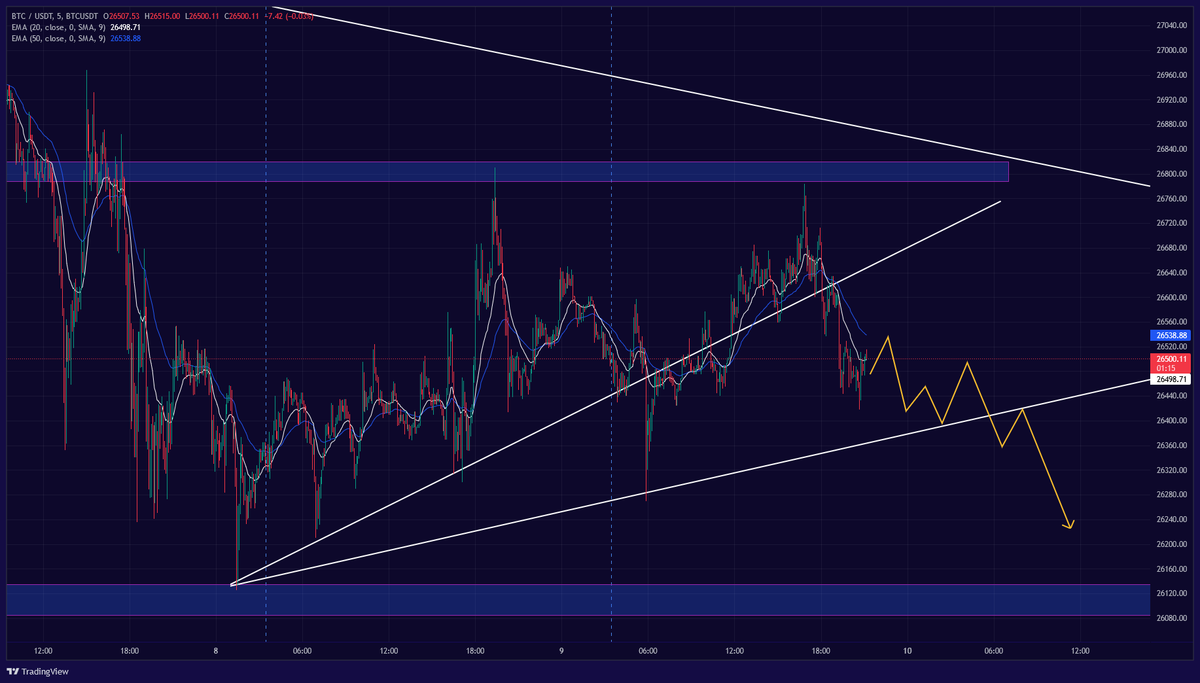 باتوجه به نمودار کلی روند بیتکوین و تشکیل الگوی MTR انتظار نزول این ارز رو در روزهای آتی داریم سعی کنید دوطرفه معامله کنید