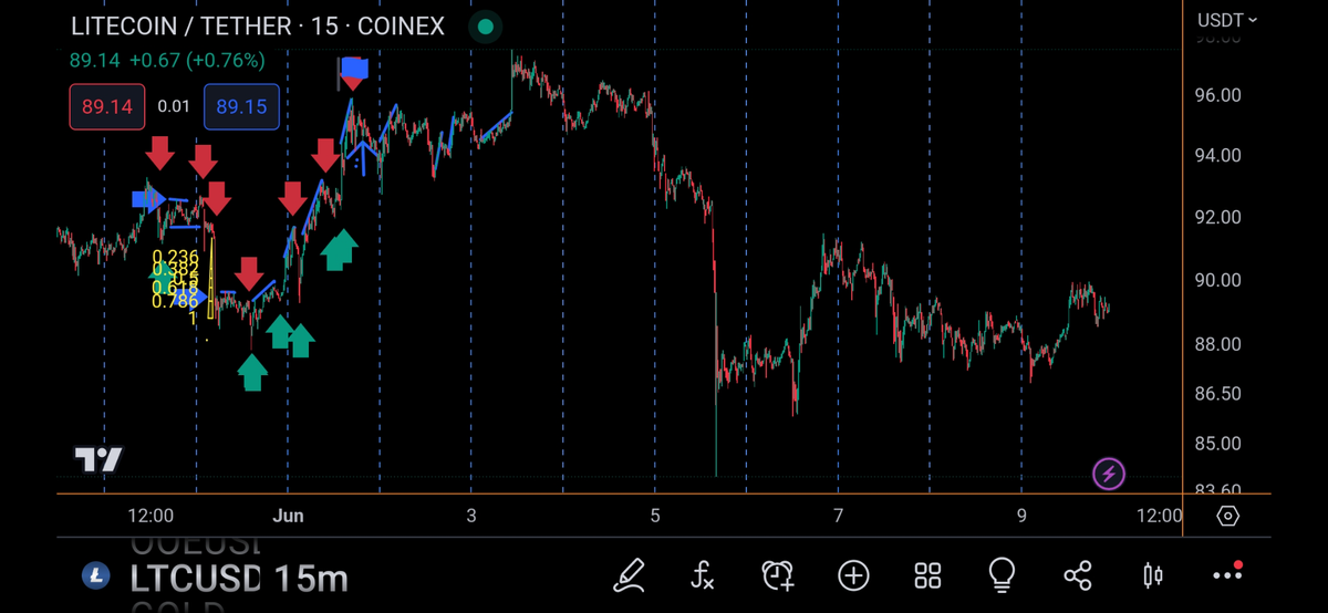 نقاط حمایتی ۸۸ و ۸۷ و در کانال پایین تر ۸۵ دلار هست .. ال تی سی شرایط مناسبی جهت صعود دارد و این مستلزم اصلاح در کانال مکدی در تایم های ۱ و ۲ساعته و روزانه دارد و در صورت عدم ریزش بیت کوین پس از اتمام روند نزولی روند صعودی را آغاز میکند ..