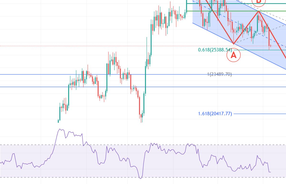 23500 تا 22500 انتهای این اصلاح هست. طبق امواج ABC و انتظار داریم قیمت بعد از رسیدن به این نواحی روند صودی خودشو از سر بگیره.