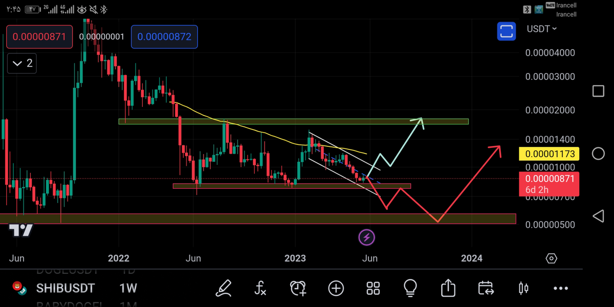 در هفته ی آتی شیبا به احتمال قوی از محدوده ی میدلاین کانال نزولی خارج خواهد شد. امیدوار هستیم با توجه به گارد صعودی بیت کوین، شیبا بتونه خودشو از سقف کانال نزولی خارج کنه. که نوید یک حرکت صعودی خوبو میده تا محدوده ی سبز بالا . (روی چارت فلش سبز رنگ)