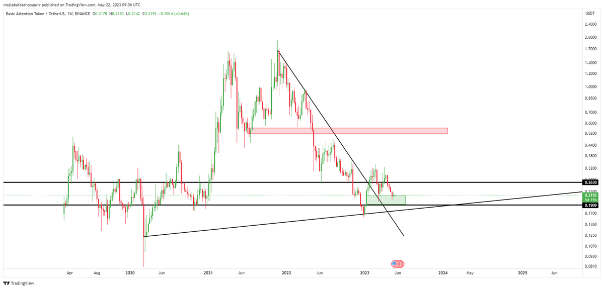 همانطور که در تصویر میبیند ، در صورت حفظ قیمت محدوده سبز رنگ حدود 0.2184 $ الی 0.1909 $ میتواند به سمت بالا تا حدود قیمت 0.2590$ حرکت کند . در صورت شکست قیمت 0.2590$ میتواند حدود قیمت 0.3071$ حرکت کند .
