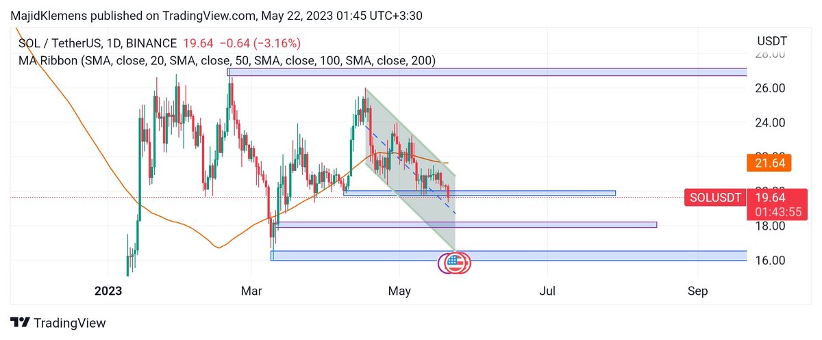 با توجه به تحلیل قبلی در تایم فریم روزانه و واکنش به محدوده انتظار میره تا محدوده ۱۸ دلار ریزش داشته باشه و بعد از شکست هدف نهایی در این تحلیل ۱۶ دلار هستش