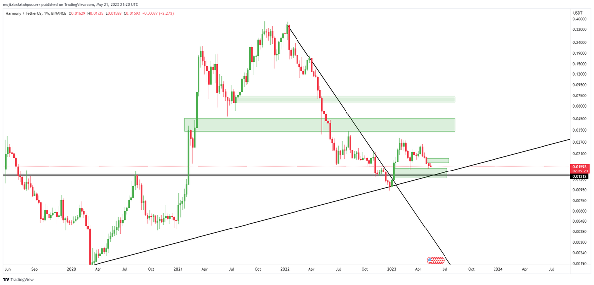 همانطور که در تصویر میبینید قیمت به نظر نیاز به اصلاح تا قیمت حدود 0.01312 $ را دارد بعد از برخورد قیمت با 0.01312$ و حفظ ان قیمت میتواند به سمت بالا حرکت کند و تارگت های 0.01795 $، 0.02099 $، 0.03377، را لمس کند .