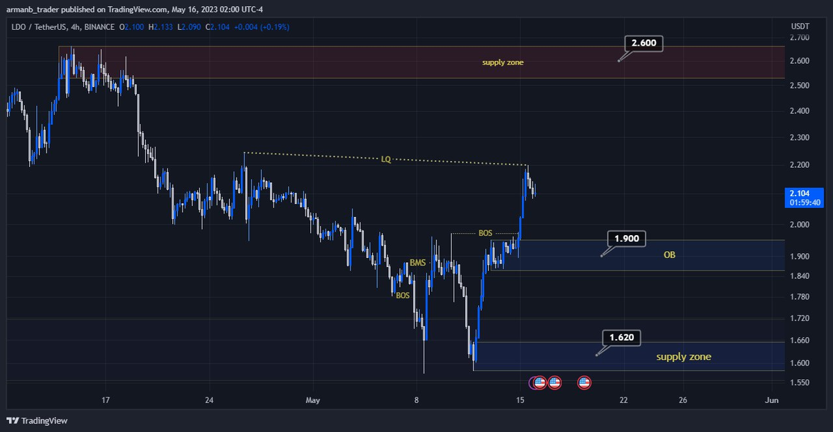 در صورت اصلاح نزولی ، در دو محدوده حمایتی 1.9 و 1.6 دلار باید منتظر دیدن تریگر بود برای گرفتن پوزیشن Buy ، مقاومت قیمت هم در چارت مشخص میباشد