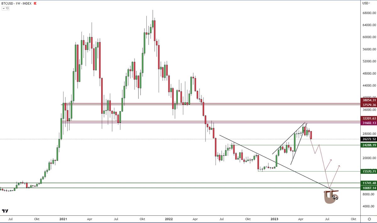بیت کوین در تایم فریم هفتگی ، روزانه و چهار ساعته کاملا روند نزولی در پیش داره ، هر حرکت رو به بالایی صرفا تله هست .
