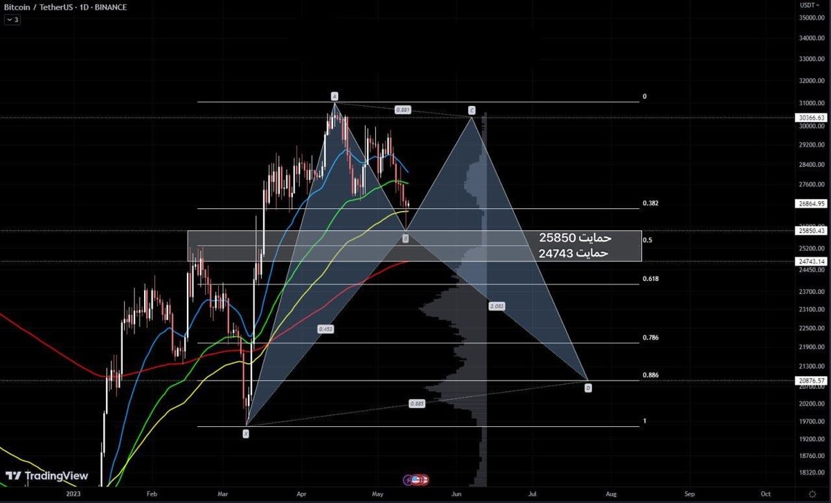 بیت وارد منطقه برگشتی شد الگوی خفاش صعودی تکمیل کرد. 25850 تا 24743 کل ناحیه معکوس برای تشکیل الگو هستش.