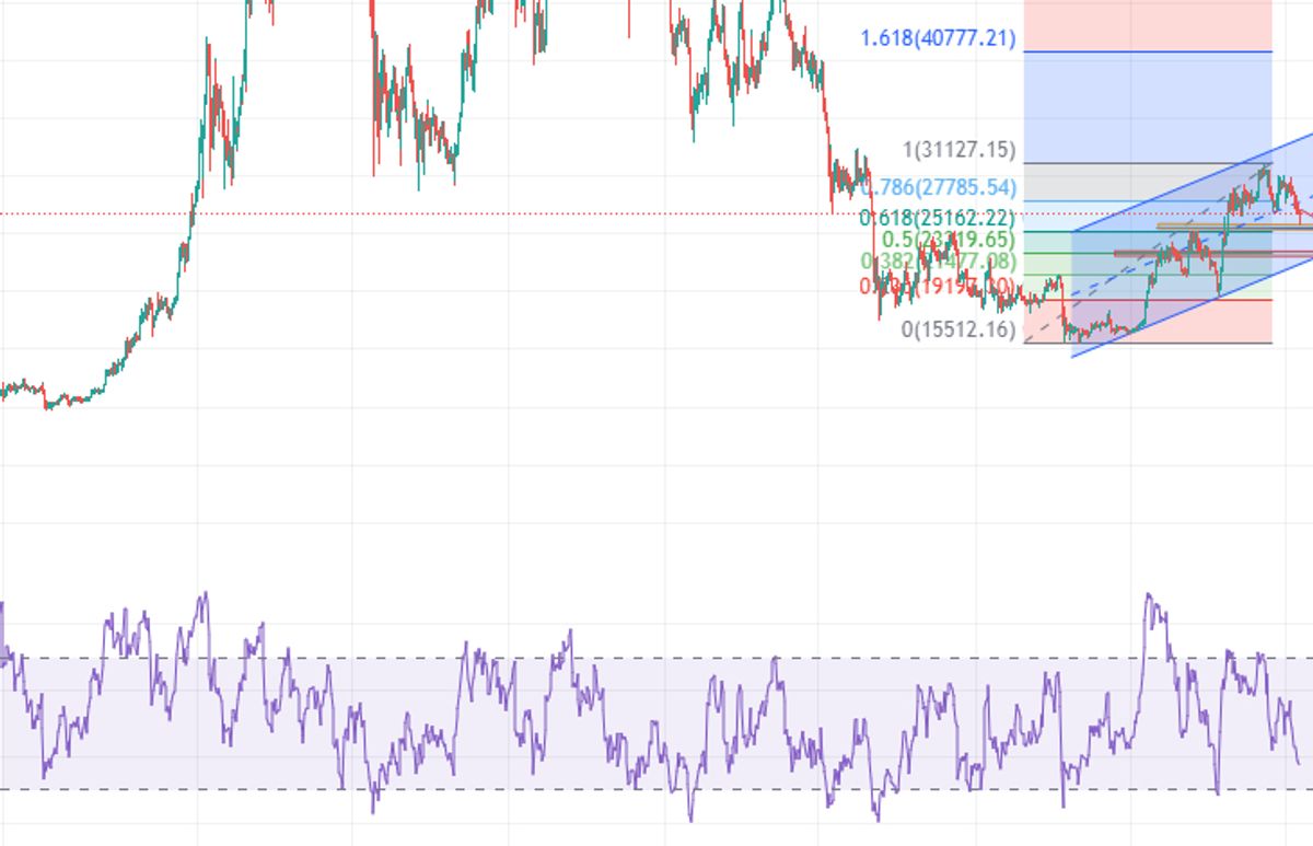 نواحی 23000 الی 25000 دلار نواحی مهمی از نظر فیبو اصلاجی و کانال صعودی است که بیتکوین میتواند بسته به انکه الت کوینها همه با هم به اصلاح های لازم برسند نزول کند