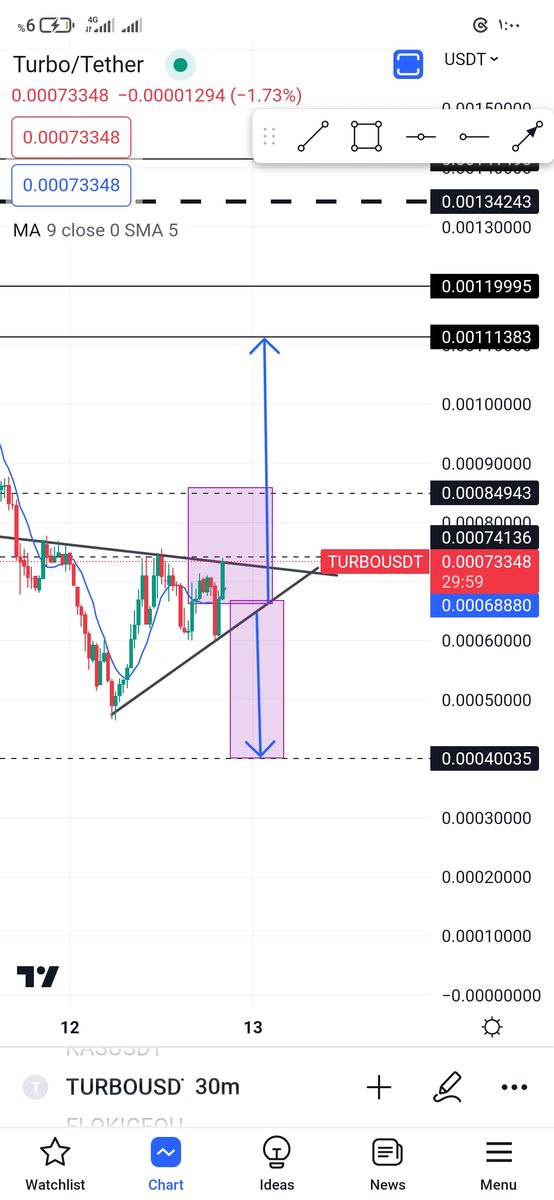 دوستان منتظرخط شکستن خط روند میلث باشید اگ ب طرف بالا بشکونه تا مقاومت بالا امکان زیاد میرع ولی ن بر عکس ب طرف حمایت میره همه چی مشخصه اگ ب سمت بالا شکست میتونید ی پله خرید کنید