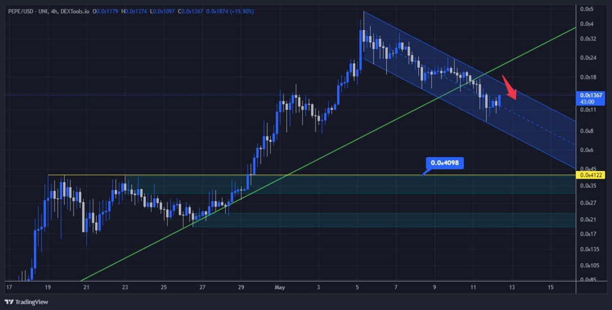 قیمت در یک کانال نزولی قرار دارد و در حال نزدیک شدن به سقف کانال نزولی خودش میباشد.