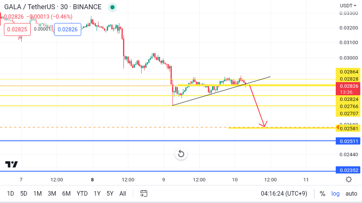 (استاپ لاس حتما تنظیم شود با توجه به رفتار قیمت گالا،ریورسال قیمت این رمزارز بسیار سریع رخ میدهد )