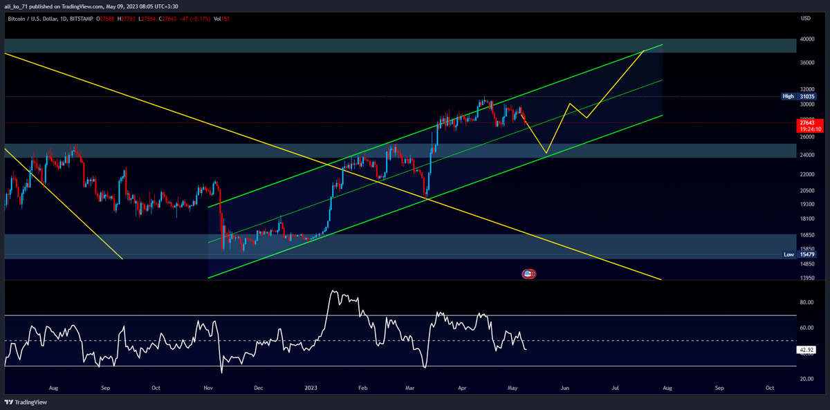 با سلام دوباره, در تحلیل قبل گفته شده بود که بیت ■■■ به محدوده های 25-24k خواهد رسید و بعد رشد خودشو مجددا شروع میکنه و اون اتفاق یواش یواش داره می افته و بصورت اصلاحی هست و جای نگرانی نداره و بنظر من اگر قصد خرید دارید فعلا دست نگهدارید تا به محدوده اعلام شده برسه.