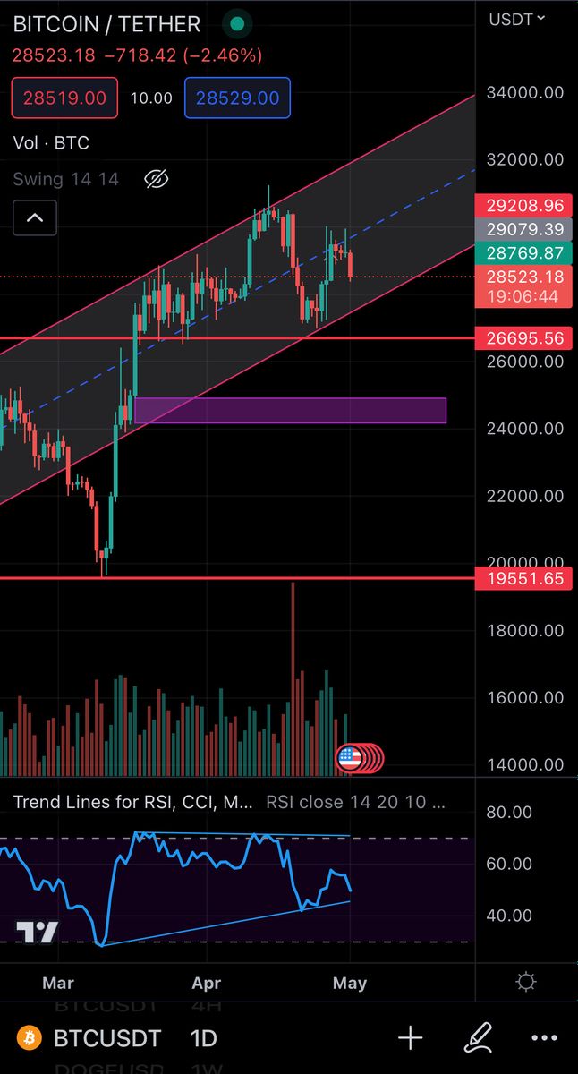 سلام خدمت تردرا عزیز همونجوری که مشاهده میکنید دیشب که برابر بود با بسته شدن کندل هفتگی و ماهانه و شروع هفته کاری در بازار های جهانی نوسان های زیادی داشتیم که از ۳۰ک بیت برای سومین بار ریجکت شد و ریزش کرد که با ریزش تمام استاپ لاس های کسایی که روی پوزیشن لانگ بودن خورد و باعث ریزش هزار دلاری گردیدن احتمالا اسن ریزش تا محدوده های اعلام شده ادامه داره و تا کادر بنفش که یک نقدینگی زیادی خواهد داشت نیز وجود داره که منطقه ای برای خرید محسوب میشودپر سود باشید و ماندگار عزیزان🌹