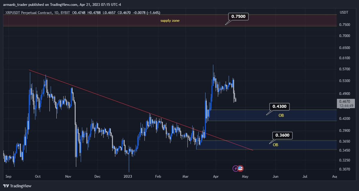 قیمت بعد از رشد خوبی که داشته در حال اصلاح نزولی میباشد و در محدوده های حمایتی 0.43 و 0.36 دلار ، بعد از دیدن تریگر میتوانیم وارد پوزیشن Buy و خرید به صورت اسپات و #هولد میان مدت شویم.