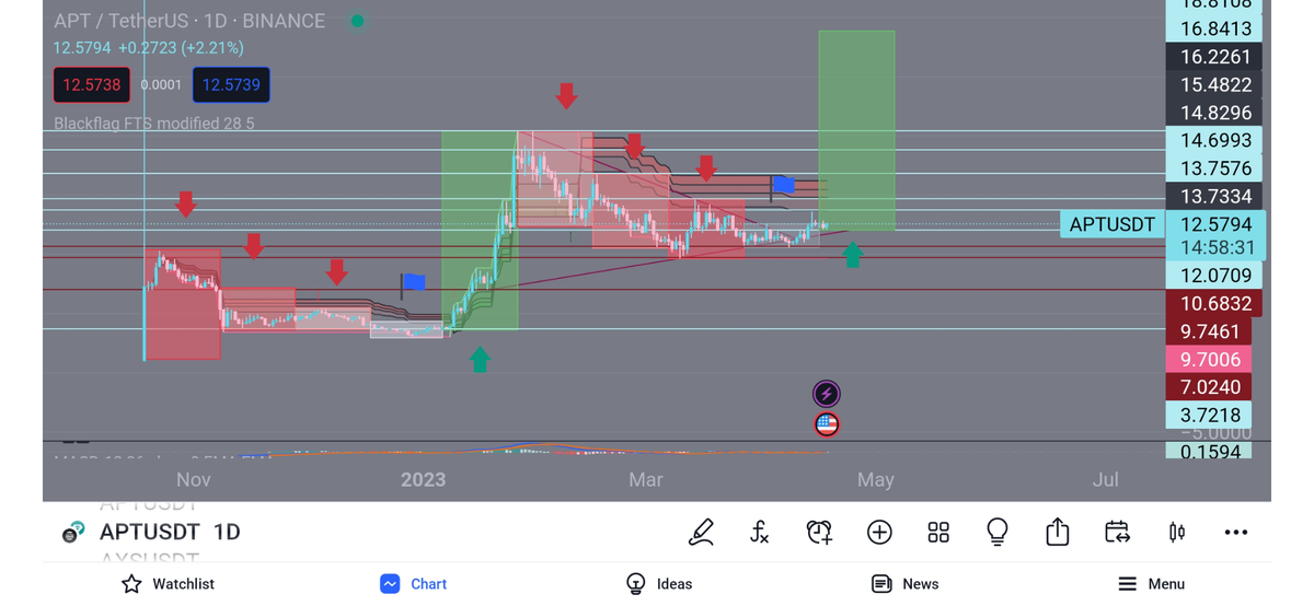 من با توجه به نمودار میتونم بگم که فرصت خرید apt هستش ول برای اطمینان استاپ لیمیت رو روی ۱۲ دلار بذارین یا نهایتا ۱۰.۶ دلار