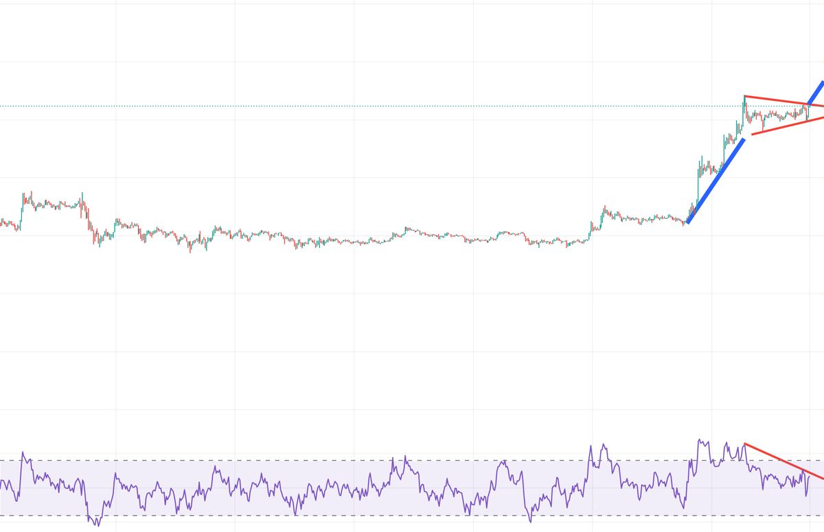 با توجه به حرکت نزولی DYX و اینکه نزول آن باعث رشد بیتکوین می شود و عبور بیتکوین از کانال صعودی که قبلا داشت انتظار رشد بیشتر آن تا حدود 31500 تا 31740 پیش بینی می شود.(حالت پرچم در تایم 15 دقیقه)