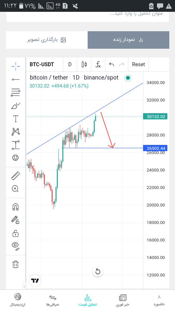 مجددا تا ۲۶ کاهش قیمت داریم در صورت عدم حمایت سطح ۲۶۰۰۰دلار در لگ دوم ۱۲ درصد دیگر قیمت کاهش میابد