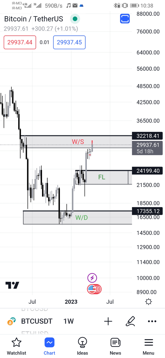 بلند مدت :دوستان ناحیه ی بین 30 تا 32(W/S) برای ما خیلی مهمه ولی اگه این ناحیه پاک سازی بشه و قیمت حوالی 33 رو ببینه موقع برگشت قیمت به پایین میتونید تو نواحی (FL) یعنی حوالی قیمت 24 که یه بیس خفنیه خرید بزنید