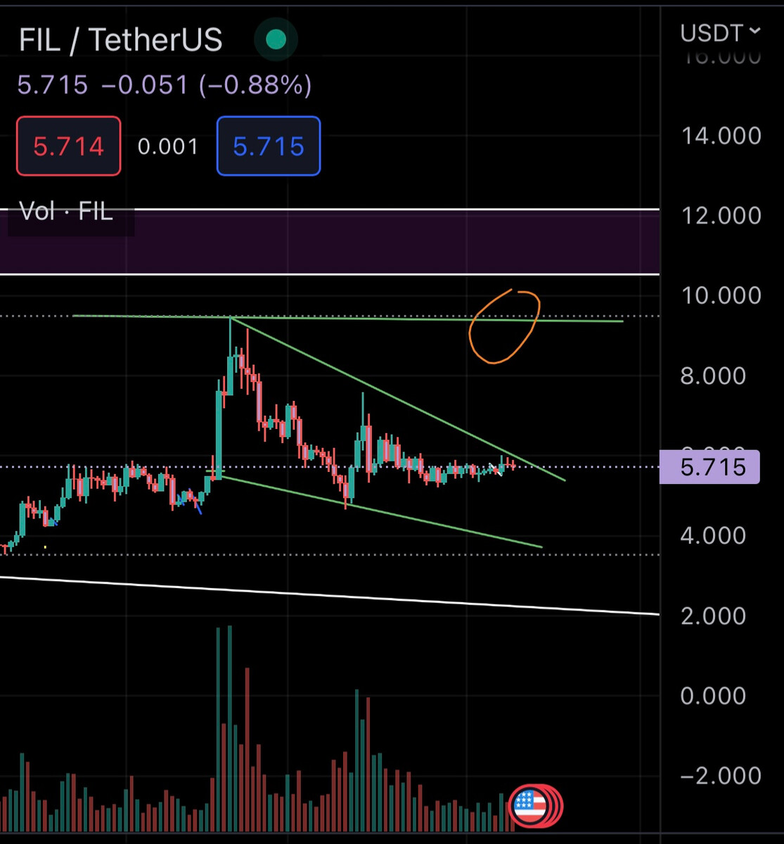 با توجه به الگوي فالينگ وج كه فايل كوين تشكيل داده انتظار دارم تا محدوده 9.5$رشد قيمتي تجربه كنه . تحليل نظر شخصي هست موفق باشيد.
