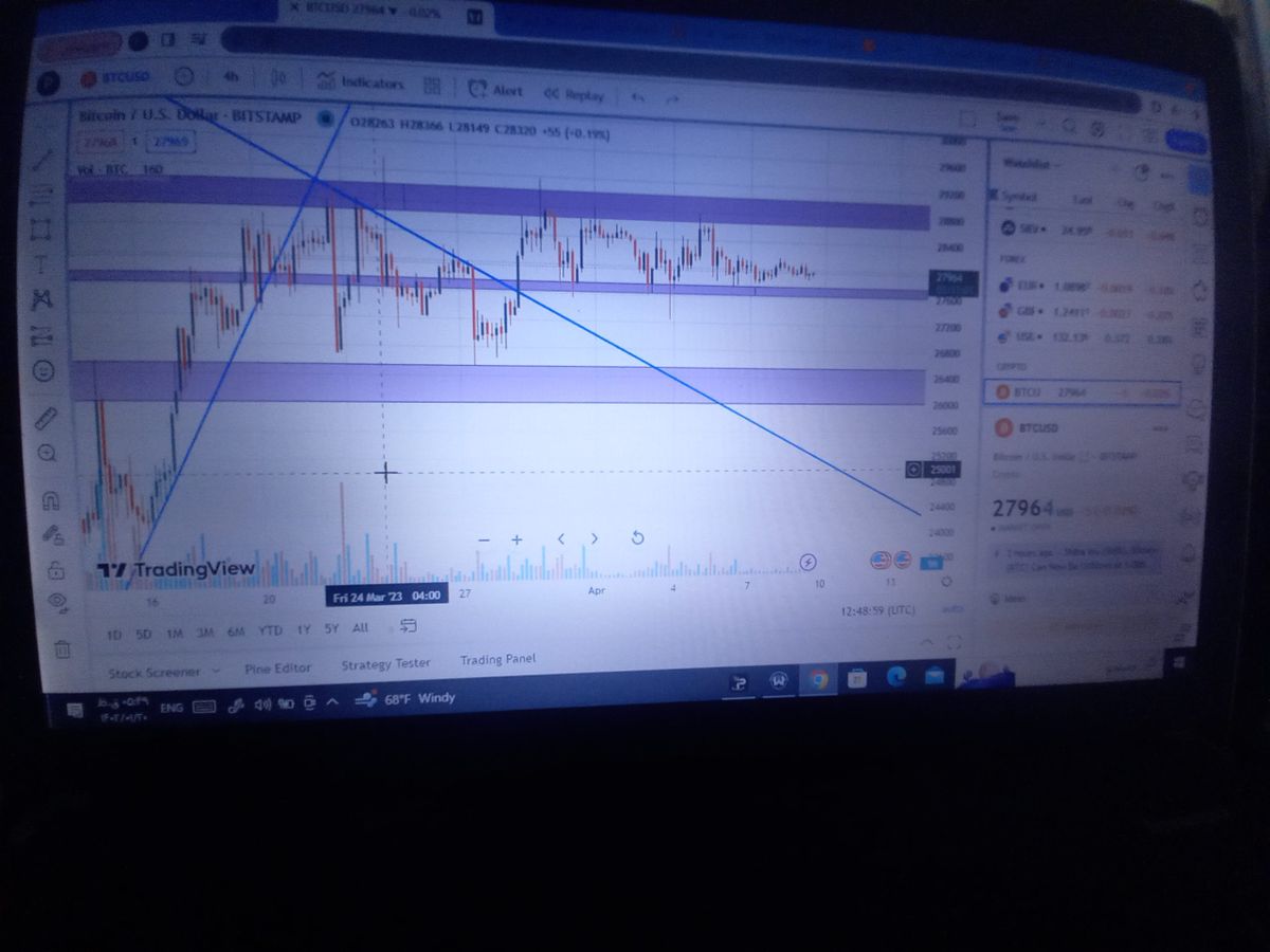 بیت کوین در تایم فریم ۴ساعته کماکان بالاتر از روند صعودی خودش در حال رنج زدن میباشد با اینکه در رنج زدن قیمتی قله های پایین تر از قبل را ثبت کرده است اما با یک فاندای مثبت ب راحتی انتهای رنج را پر قدرت ب بالا خواهد شکست درصورت فاندای منفی برعکس این حالت اتفاق میافتد