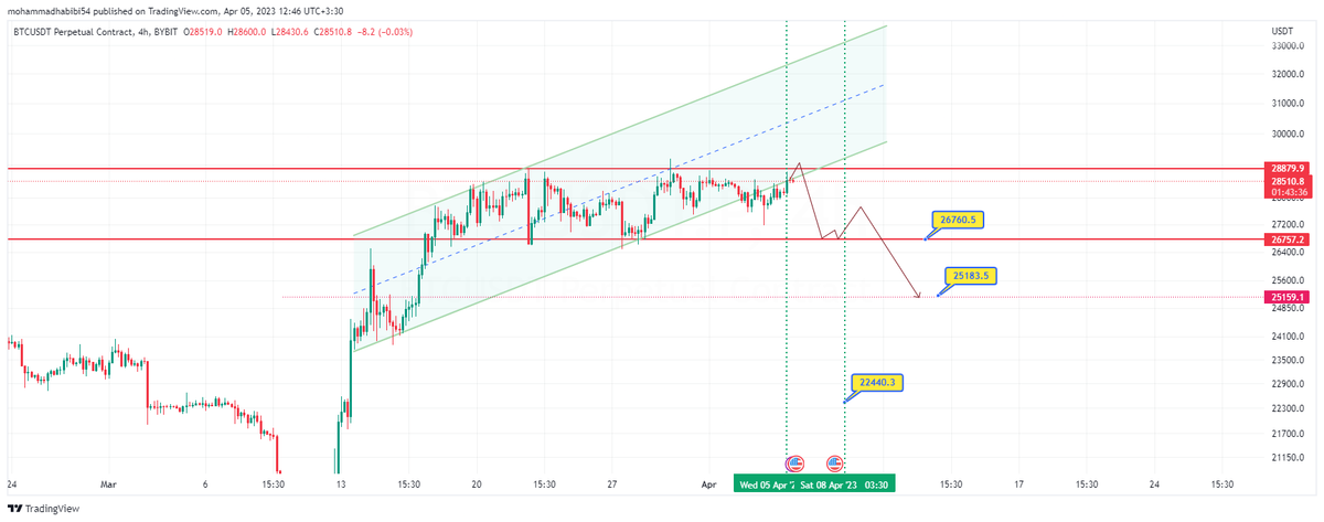 در تحلیل قبل هم نظرم رو روی ریزش اعلام کردم روند حرکتی بیت کوین به نظر من به این شکل خواهد بود مگر اینکه بالای 29250 تثبیت بدهیم این تحلیل فیل خواهد شد بر اساس خطوط زمانی رسم شده انتظار پیوت قیمت دارم در مرحله اول 26750 درمرحله دوم 25200 و در وهله ی اخر 22450 در دسترس خواهد بود. این نظرشخصی است و بنده پدرکشتگی با بیت کوین ندارم با وجود اینکه ریزش بیت موجب ضرر به دارایی هولد من می شود اما باید واقع بین بود و چیزی که چارت نشان می دهد را به دوراز تعصب بیان کرد. پرسود و موفق باشید