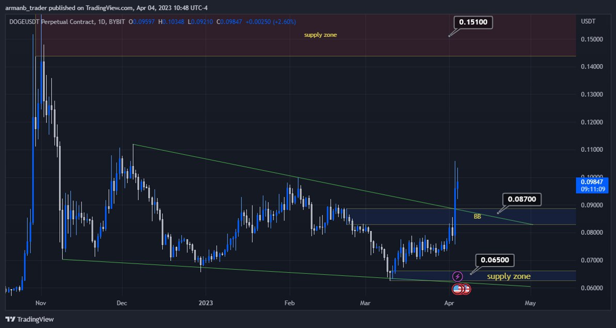 دوج کوین بعد از خبر مثبتی که داشت ، رشد با مومنتومی داشته که باعث شکست ساختار و شکست خط روند نزولی خودش شده ، و نشان از قدرت خریداران میباشد و هر اصلاح نزولی فرصت خرید میباشد.