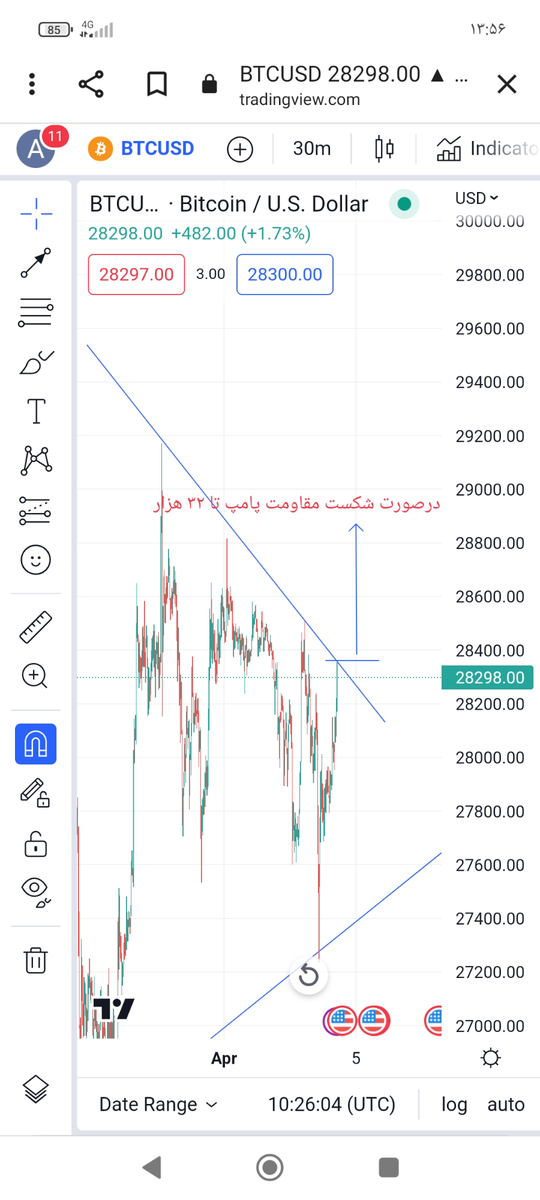 درصورت شکست مقاومت ۲۸,۳۸۰.۰۰ میتونیم شاهد پامپ قیمتی بیت کوین باشیم ولی در صورت عدم شکست امکان اصلاح تا محدوده ۲۷,۵۵۰.۰۰خواهد بود