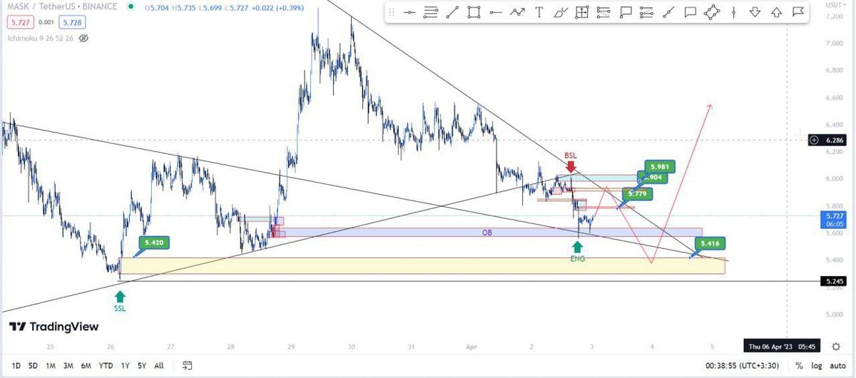 مسک در تلاش بک حجم خوب و یک کف جدید بسازه فیبو و عالیه واگرایی مثبت مشهود روی نموداره بنظرم اگه طبق تیکنیکال پیش بره میتونه وارد یک روندصعودی عالی بشه