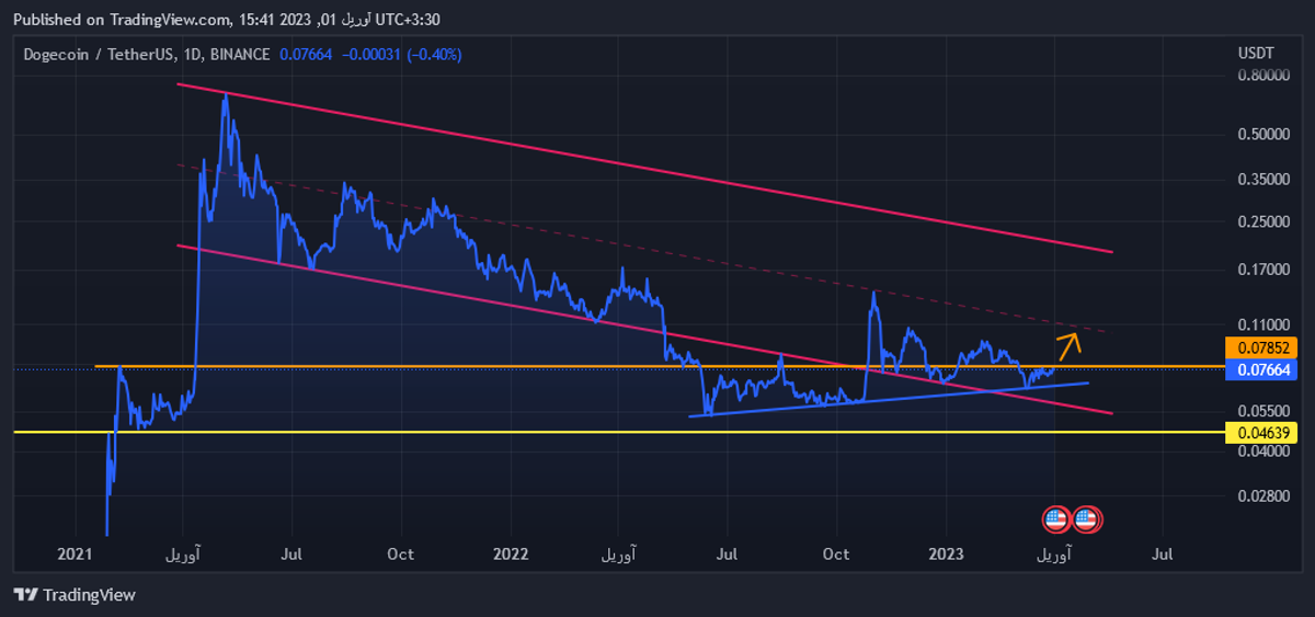دوج کوین / بلند مدت روزانه : در صورت عبور از مقاومت 0.079 حوالی 0.10 مصادف با میدلاین کانال نزولی میتونه پیشرفت کنه . ( سلب مسئولیت ) موفق باشید ...