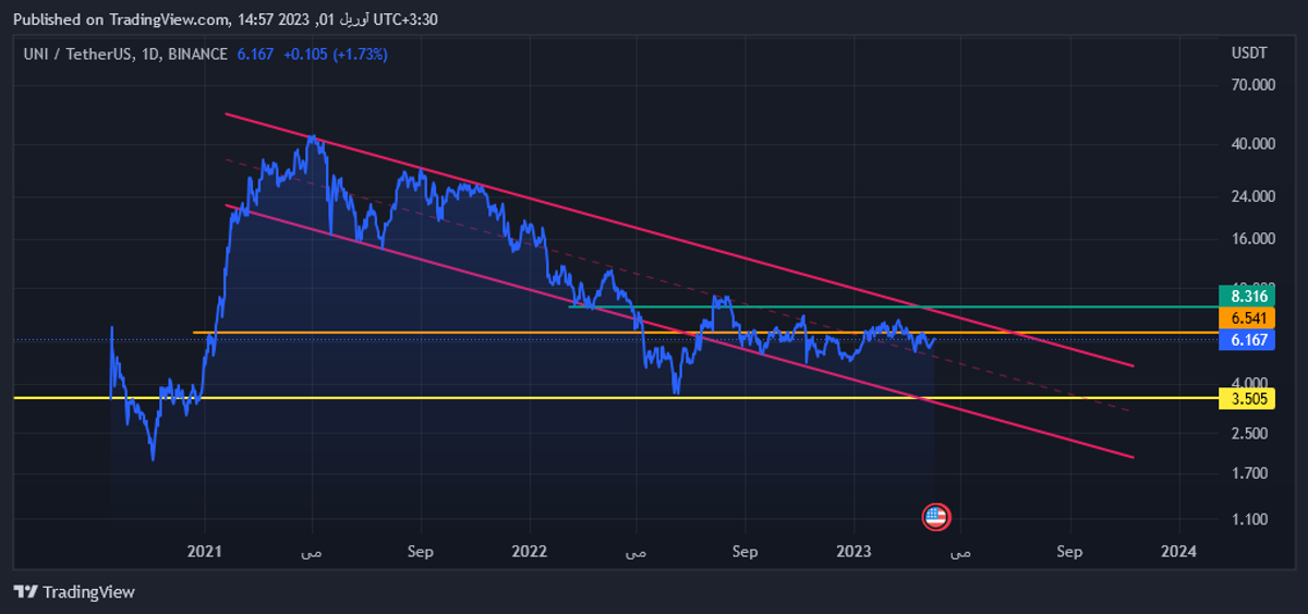 آپدیت یونی سواپ / بلند مدت روزانه : حمایت محدوده 5 و تارگن محدوده 8.3 ( در سقف کانال نزولی ) پیش روی این رمزارز هست . موفق باشید ...